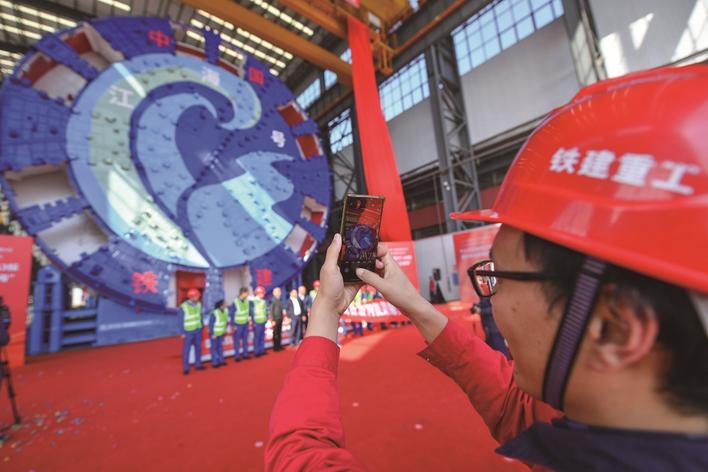 “江海號(hào)”盾構(gòu)機(jī)由中國(guó)鐵建重工集團(tuán)、中鐵十四局集團(tuán)聯(lián)合打造,整機(jī)長(zhǎng)約145米,總重量約5000噸,以海太長(zhǎng)江隧道工程跨越長(zhǎng)江、毗鄰大海兩個(gè)意向融合命名,其刀盤涂裝有向前進(jìn)擊的蔚藍(lán)色巨浪,寓意著盾構(gòu)機(jī)將聚力潛行、通達(dá)江海。