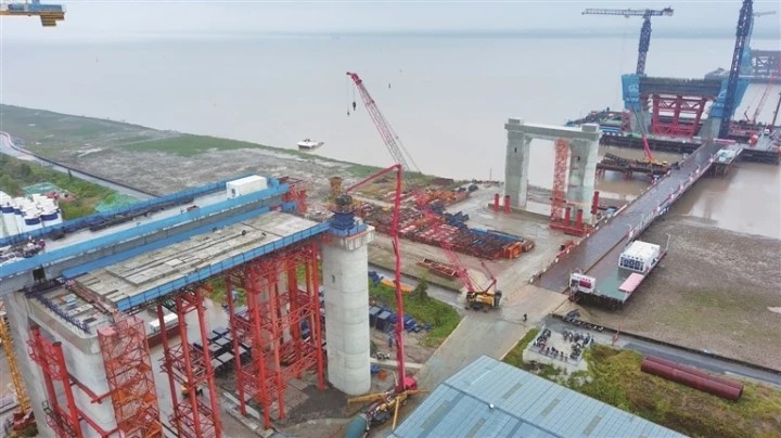 發(fā)布時(shí)間:2024-11-02 09:52:57 編輯:奚柯柯 來源:10月31日下午3時(shí)52分許,經(jīng)過連續(xù)3個(gè)小時(shí)緊張有序的作業(yè),崇啟公鐵長(zhǎng)江大橋合建設(shè)段首次公路框架墩立柱澆筑,為大橋上層公路施工敲響第一聲“戰(zhàn)鼓”。