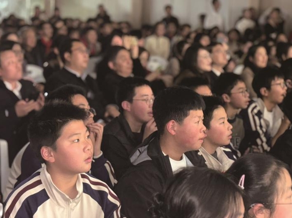 初一(2)班學(xué)生張瀟自編自演的作品《不平靜的夜晚》獲得了在場(chǎng)師生的廣泛好評(píng)。作品根據(jù)其真實(shí)經(jīng)歷寫(xiě)成,表達(dá)了和諧的家庭氛圍對(duì)孩子成長(zhǎng)的重要性?!跋Mㄟ^(guò)這部作品能夠讓父母聽(tīng)到我們的心聲,讓自己的孩子能有一個(gè)良好的家庭學(xué)習(xí)環(huán)境。”在劇本創(chuàng)作的過(guò)程中,張瀟還得到了學(xué)校戲劇老師的輔導(dǎo),他說(shuō):“在專(zhuān)業(yè)老師的指導(dǎo)下,我了解到許多關(guān)于戲劇創(chuàng)作的知識(shí),以后我也想開(kāi)拓思維,嘗試更多的創(chuàng)作。”